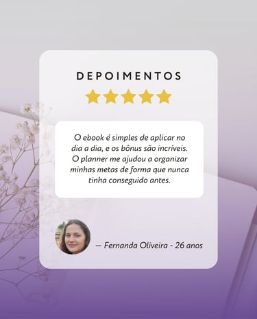 Um planner prático e direto ao ponto, com metas semanais e ações certeiras pra te guiar nos próximos 90 dias rumo à sua liberdade financeira e emocional. Saia do CLT com estratégia, leveza e segurança.