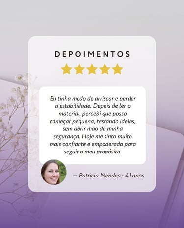 Mais que um exercício: um espaço de reconexão. Com perguntas profundas e afirmações poderosas, esse material vai te ajudar a quebrar crenças limitantes e assumir o controle da sua nova realidade.
